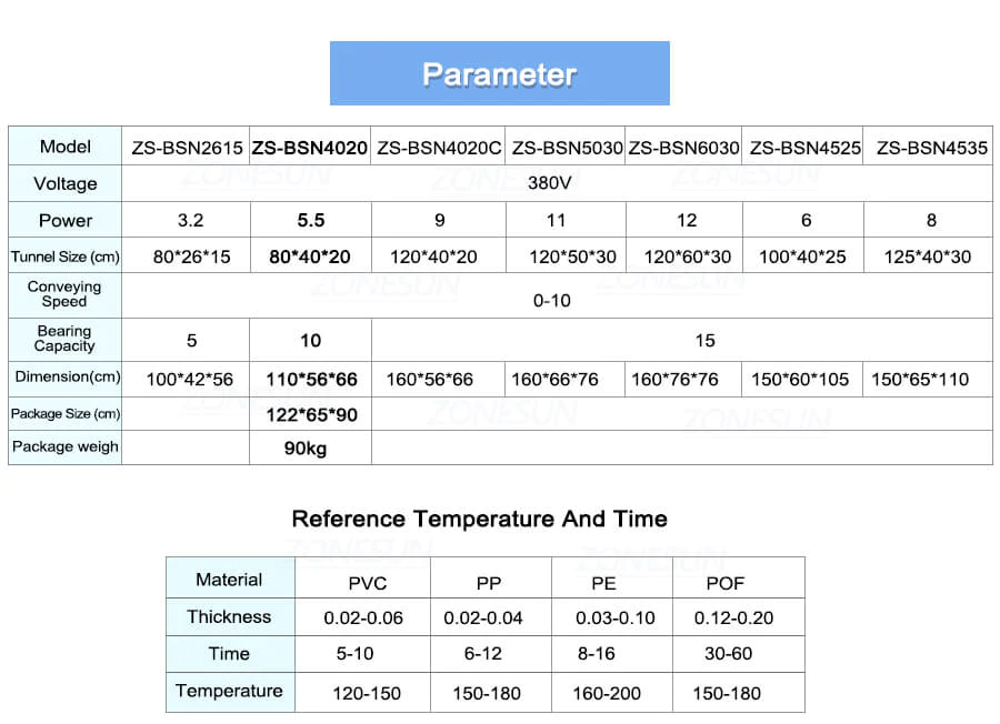Con mayor potencia, esta máquina puede establecer la temperatura según las necesidades de los clientes. Se calienta con aire caliente de forma circular y uniforme, asegura el efecto de envoltura. Esta máquina se usa ampliamente en el envasado de productos en las industrias de alimentos, bebidas, cosméticos y calzado.